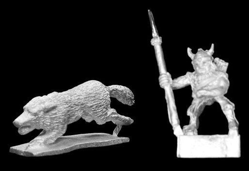 Description: Wolf Rider of the Night, with spear, mtd on wolf
